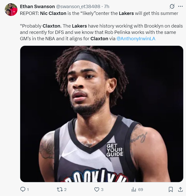 湖人得到:克拉克斯顿、基恩-约翰逊、2026年篮网次轮。这笔交易后湖人不仅得到一个先发五号位,还得到了一个身高1.93米的板凳席砍分手。